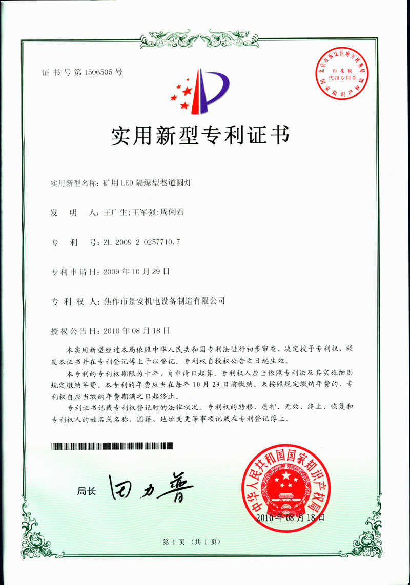 焦作景安公司始終堅(jiān)持“以科技為先導(dǎo),以市場(chǎng)為導(dǎo)向”的發(fā)展戰(zhàn)略,不斷進(jìn)行新產(chǎn)品的研制和開(kāi)發(fā),在國(guó)家“六五”到“九五”期間,承擔(dān)和參與了國(guó)家多項(xiàng)科技攻關(guān)項(xiàng)目。并被中國(guó)電器工業(yè)協(xié)會(huì)評(píng)定為“質(zhì)量可信產(chǎn)品”。特別是在礦用防爆燈領(lǐng)域,礦用隔爆型半導(dǎo)體(LED)照明燈具,2008年列入國(guó)家火炬計(jì)劃,獲2009年河南省工業(yè)和信息化廳的科技成果二等獎(jiǎng),并擁有多項(xiàng)國(guó)家專利。